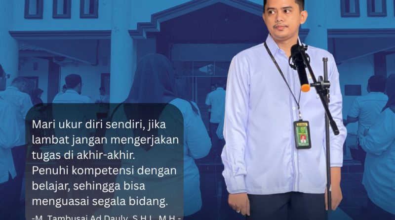 Lebih lanjut, ia mengimbau agar setiap individu mampu mengukur kapasitas diri dalam bekerja. Pekerjaan diharapkan tidak ditunda hingga mendekati batas waktu, melainkan diselesaikan sejak awal agar hasilnya lebih optimal. Ia juga menekankan bahwa setiap pekerjaan yang dilakukan secara pribadi tetap memiliki keterkaitan dengan pekerjaan orang lain, sehingga diperlukan kehati-hatian agar tidak merugikan pihak lain.