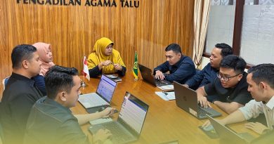 Senin (09/09), sesuai dengan jadwal briefing rutin setiap hari senin pagi kepada petugas ptsp dan satuan pengamanan selaku petugas yang melayani masyarakat secara langsung, kali ini giliran panitera muda Gugatan Pengadilan Agama Talu yaitu Meridianto, SH yang menyampaikan briefing. Beliau menyampaikan nasehat dan motivasi agar seluruh petugas lebih bersemangat dalam bekerja.