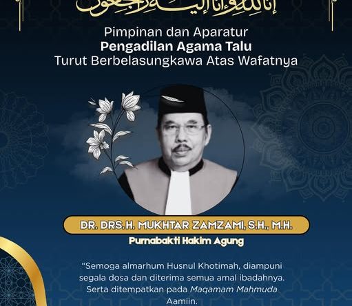 Read MoreInnalillahi wa inna ilaihi raji’un Pimpinan dan Seluruh Aparatur Pengadilan Agama Talu Mengucapkan Turut Berbelasungkawa atas wafatnya YM. Dr. Drs.