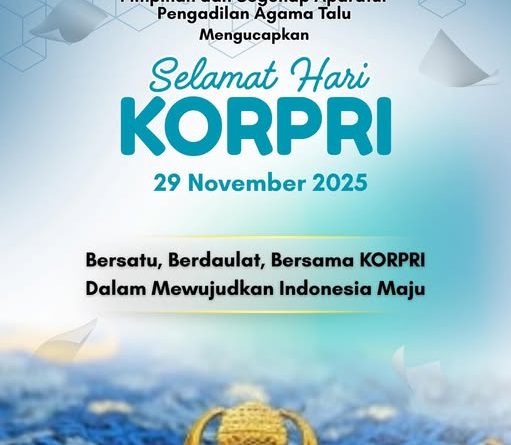 Read MorePimpinan dan Segenap Aparatur Pengadilan Agama Talu mengucapkan “Selamat Memperingati HARI KORPS PEGAWAI REPUBLIK INDONESIA” 29 November 2025 “Bersatu, Berdaulat,