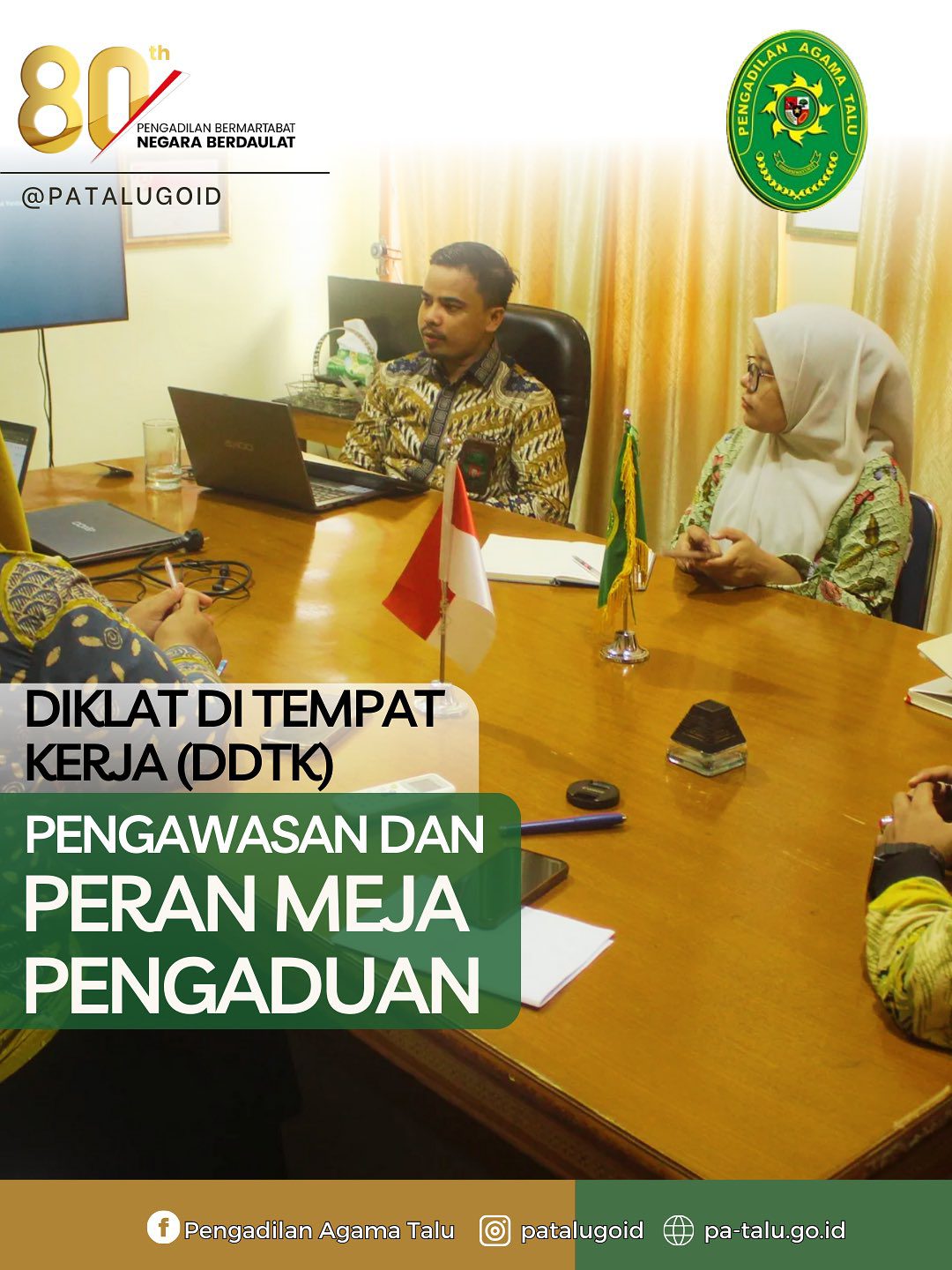 Pengadilan Agama (PA) Talu menunjukkan komitmennya dalam meningkatkan pelayanan publik dengan mengadakan Diklat Di Tempat Kerja. DDTK ini berfokus pada pedoman dan penanganan pengaduan terutama pada bagian Meja Pengaduan.