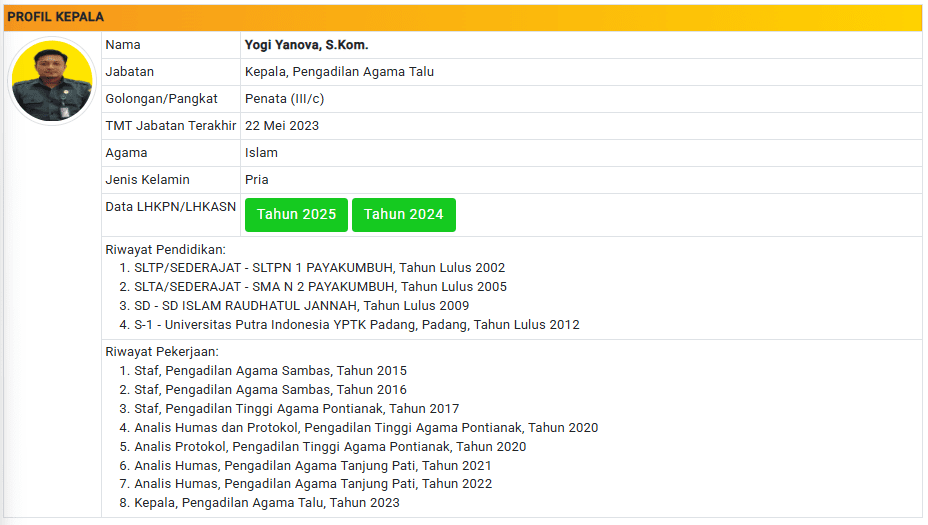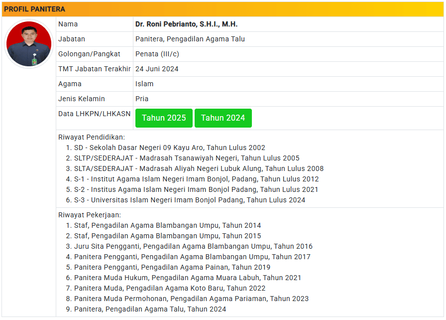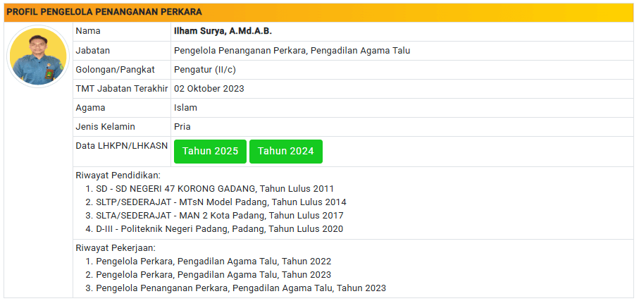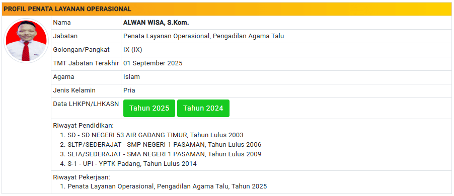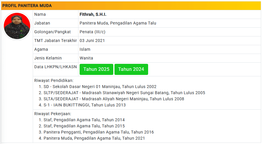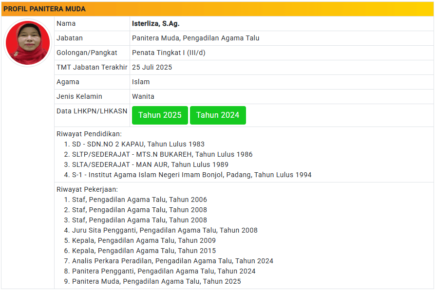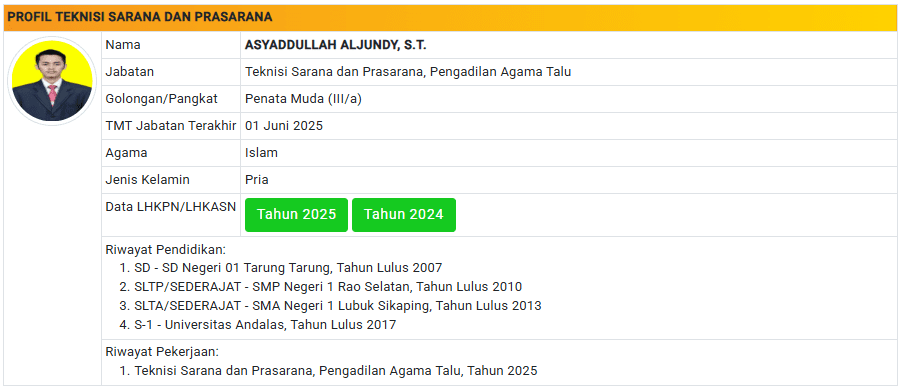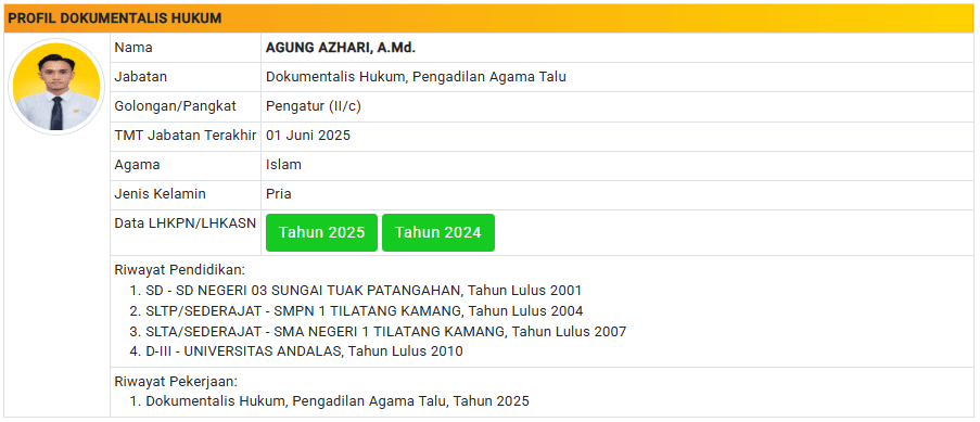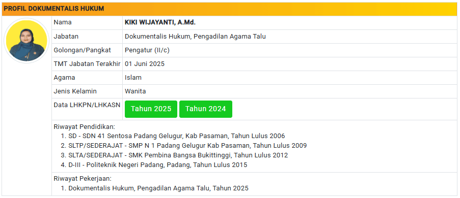Menu Profil Pegawai PA Talu 4 Januari 2025 TIM IT PA Talu KETUA PENGADILAN AGAMA TALU powered by Advanced iFrame WAKIL KETUA PENGADILAN AGAMA TALU powered by Advanced iFrame HAKIM PENGADILAN AGAMA TALU powered by Advanced iFrame KEPANITERAAN PENGADILAN AGAMA TALU powered by Advanced iFrame KESEKRETARIATAN PENGADILAN AGAMA TALU powered by Advanced iFrame PELAKSANA PENGADILAN AGAMA TALU powered by Advanced iFrame