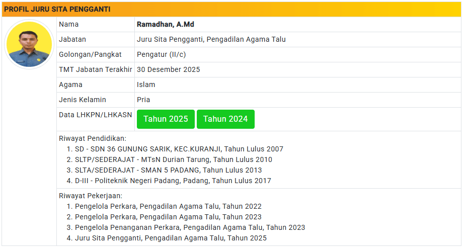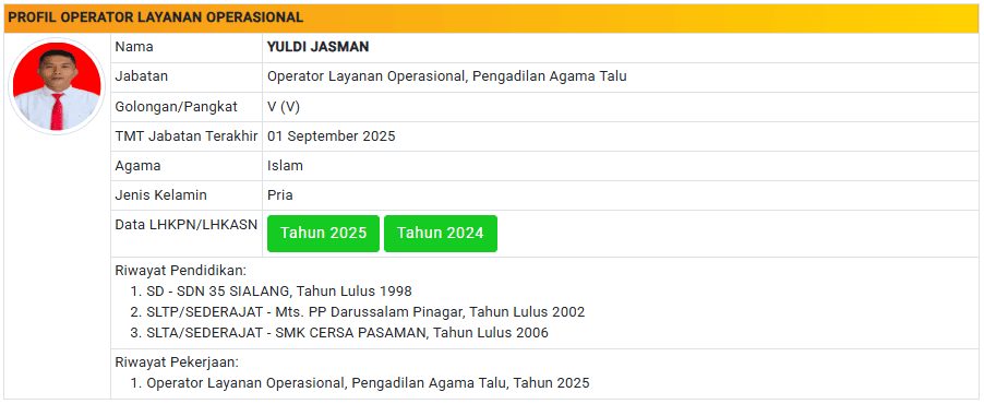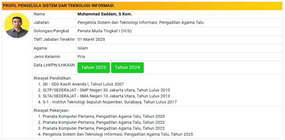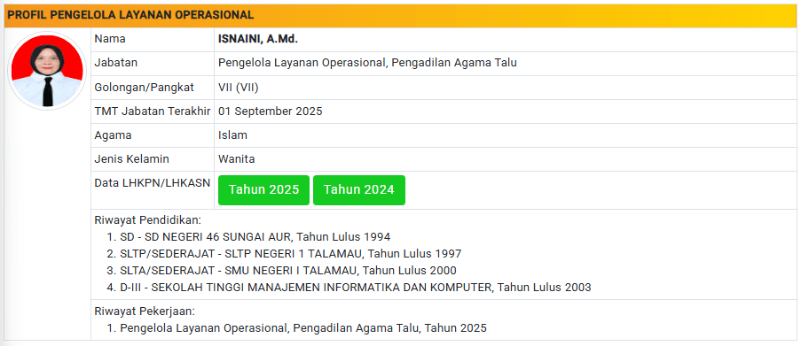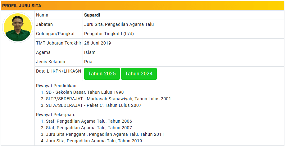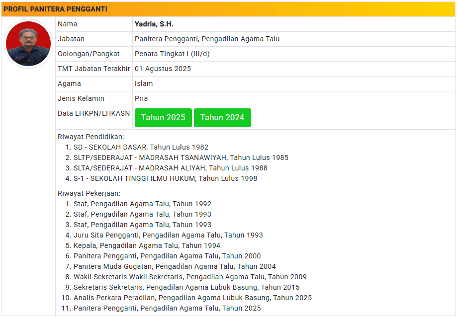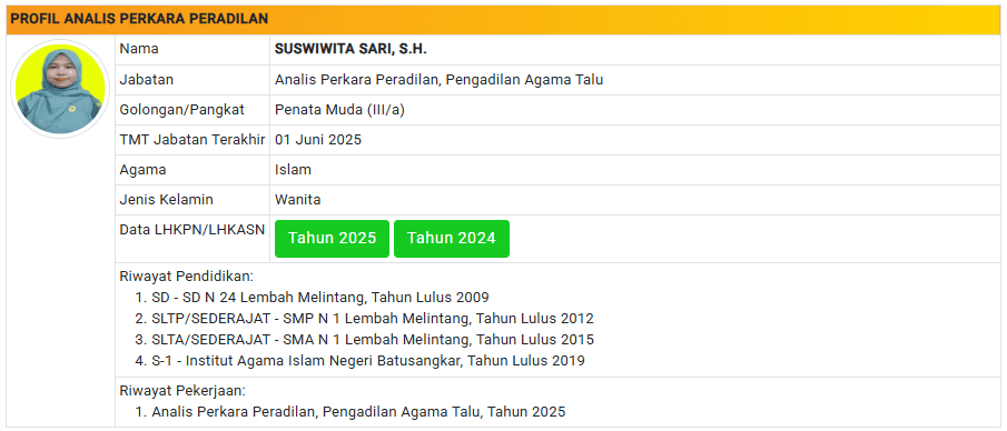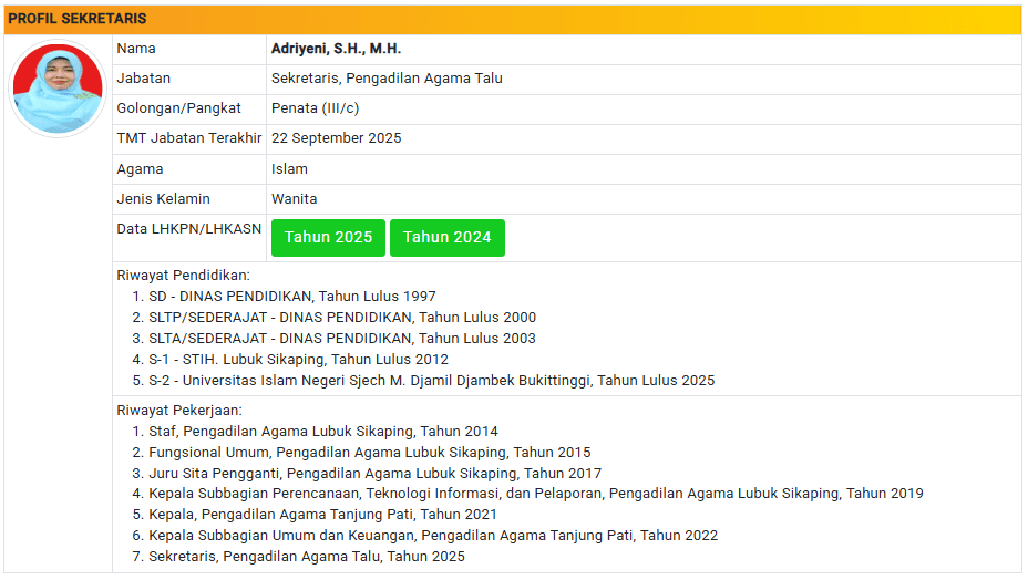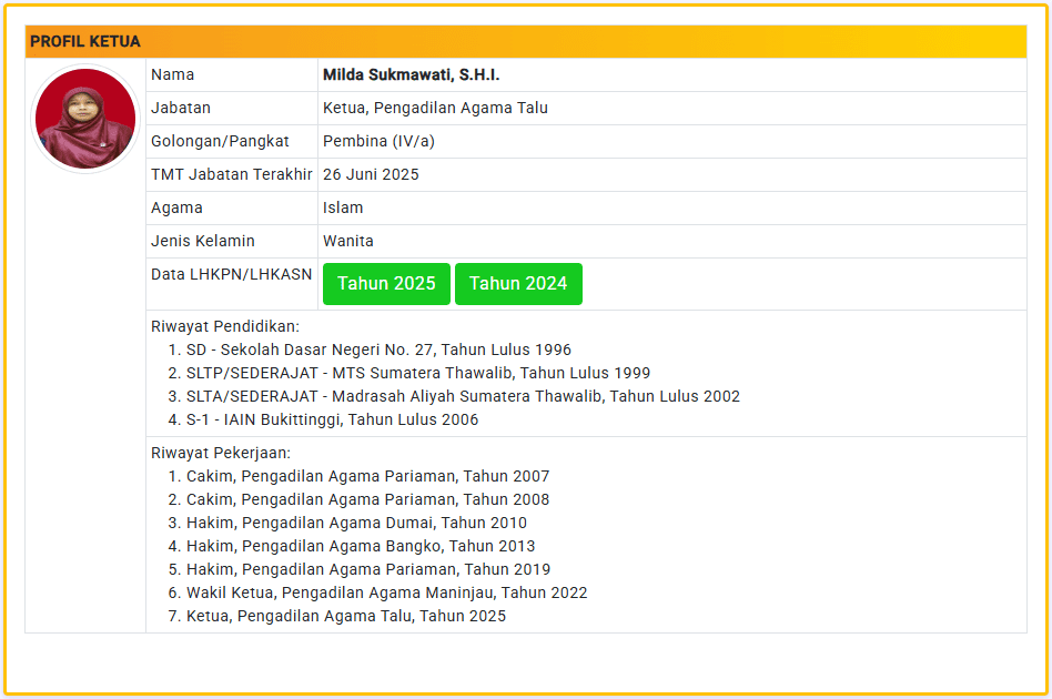 Menu Profil Pegawai PA Talu 4 Januari 2025 TIM IT PA Talu KETUA PENGADILAN AGAMA TALU powered by Advanced iFrame WAKIL KETUA PENGADILAN AGAMA TALU powered by Advanced iFrame HAKIM PENGADILAN AGAMA TALU powered by Advanced iFrame KEPANITERAAN PENGADILAN AGAMA TALU powered by Advanced iFrame KESEKRETARIATAN PENGADILAN AGAMA TALU powered by Advanced iFrame PELAKSANA PENGADILAN AGAMA TALU powered by Advanced iFrame