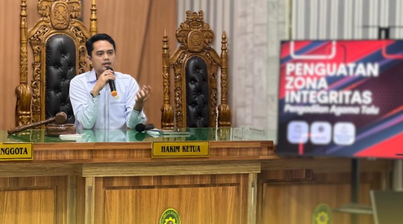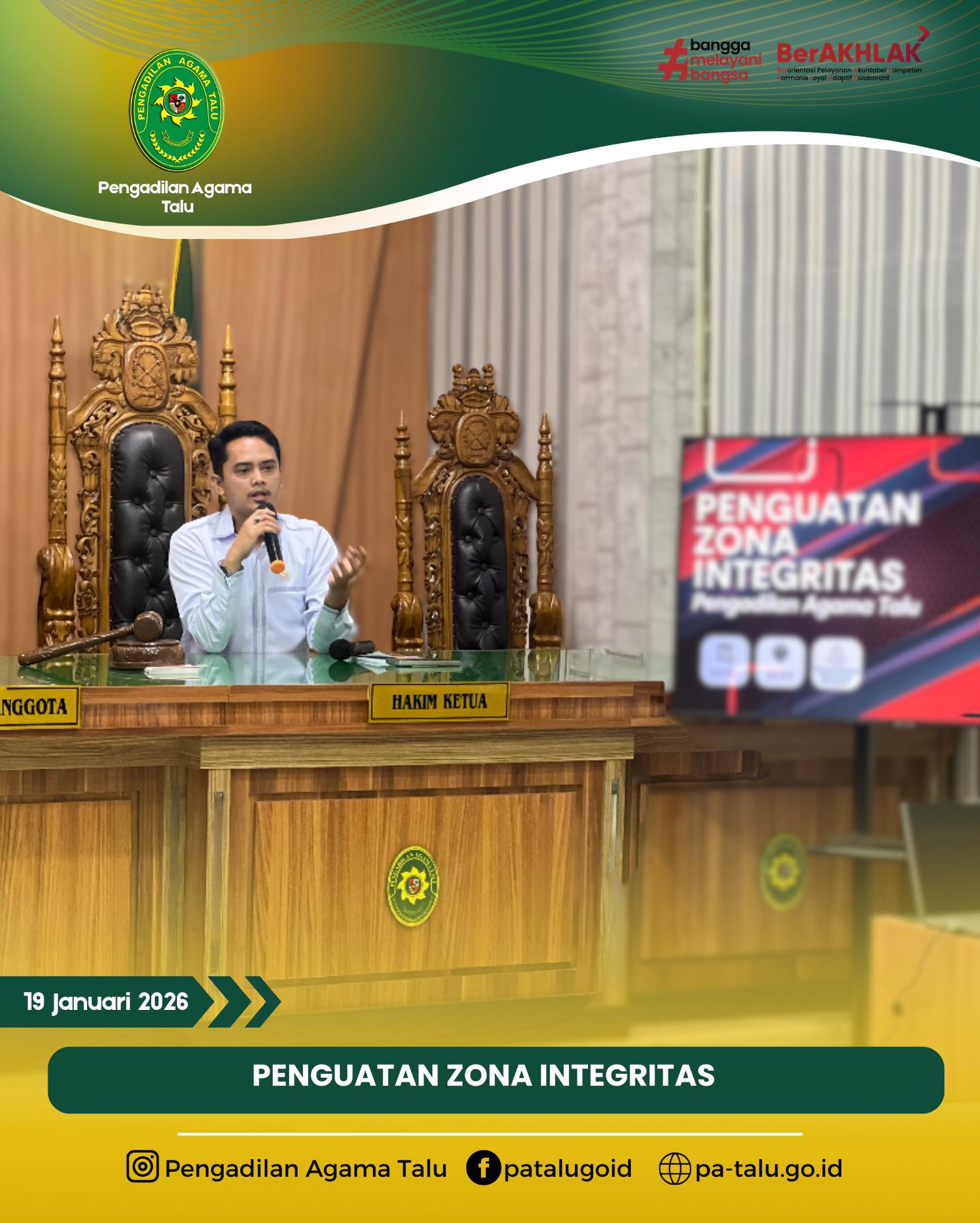 Pegawai Pengadilan Agama Talu melaksanakan Rapat Penguatan Zona Integritas. Rapat dipimpin oleh Bapak Muhamad Tambusai Ad Dauly, S.H.I., M.H. selaku Ketua Tim Zona Integritas yang baru. Kegiatan ini menekankan pentingnya evaluasi pelaksanaan Zona Integritas Tahun 2025 sebagai langkah strategis dalam melakukan perbaikan dan penguatan secara berkelanjutan di masa mendatang. Dalam arahannya, Bapak Muhamad Tambusai Ad Dauly, S.H.I., M.H. menegaskan bahwa pembangunan Zona Integritas merupakan tanggung jawab bersama seluruh aparatur, di mana setiap pegawai memiliki peran penting sesuai dengan tugas dan fungsinya masing-masing. Pembangunan Zona Integritas bertujuan untuk menciptakan birokrasi yang bersih dan melayani, dengan fokus utama pada upaya pencegahan korupsi, kolusi, dan nepotisme (KKN), serta peningkatan kualitas pelayanan publik agar lebih cepat, transparan, akuntabel, dan mampu memberikan kepuasan kepada masyarakat. Upaya tersebut diharapkan dapat membangun dan memperkuat kepercayaan publik terhadap lembaga peradilan.