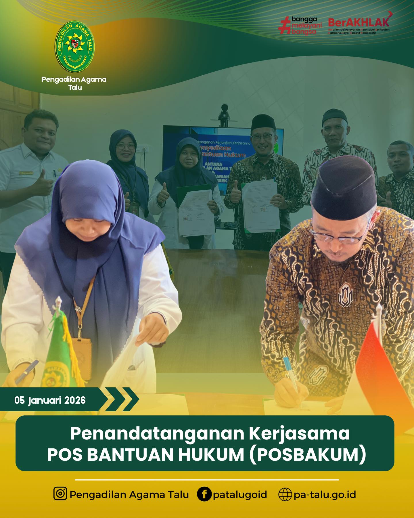 Tingkatkan Akses Layanan Bantuan Hukum, PA Talu Tandatangani Kerjasama Pos Bantuan Hukum (POSBAKUM)